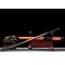 Epée chinoise forgé dans le respect de la tradition ancestrale des forgerons de l'ancienne dynastie, aiguisé et poli à la main avec des pierres à aiguisé japonaises de différents grains. Lame pleine soie en acier plié (forge Damassé) avec des reflet entre le rouge, le violet et le noir. Le magnifique phoénix à la base de la lame rajoute le dernier détail d'une épée chinoise à la finition parfaite !