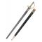 Epée de cour avec fusée et monture en laiton ciselé à décor torsadé. Garde à une branche, pas d'âne et coquille bivalve. Lame triangulaire . Réplique de l'Epoque Louis XVI.
