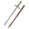 Plongez dans l'essence même du Moyen Âge avec notre Épée Templier, une oeuvre exceptionnelle inspirée des modèles du XIIIe siècle. Cette épée incarne l'élégance et la symbolique profonde de l'ordre des Templiers, avec un pommeau orné du sceau templier, de chevaliers intrépides, d'un griffon majestueux, d'un bouclier puissant, et de la croix emblématique des templiers.