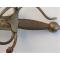 La lame est en état d'usage avec de nombreuses traces d'oxydation. Il s'agit d'une lame plate à double tranchant, elle mesure 83 cm environ - légèrement tordue, elle reste toutefois largement présentable - elle présente un léger jeu