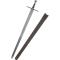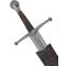 Fabriquée en acier forgé, la lame de 76 cm assure robustesse et résistance, tandis que la poignée en cuir marron garantit une prise confortable et authentique. L'épée est livrée avec un fourreau en cuir brun, orné d'une gravure d'une croix pattée dans un blason, ce qui en fait une pièce idéale pour la collection ou l'exposition.