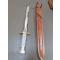 Lame inox 35 cms 12 mms d epaisseur , manche aluminium strié , pommeau démontable alu et inox , les partie avec filetages sont en inox .