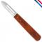 Un éplucheur (appelé également économe) est un petit couteau muni d'un manche et d'une lame pointue double fente. Il permet d' éplucher les légumes ou les fruits crus en enlevant un minimum de chair sous la pelure. La pointe de la lame permet d'enlever les parties non comestibles du fruit ou du légume. Caractéristiques techniques » Taille : 6,5 cm » Poids : 80 gr » Manche en bois vernis » Lame inox double fente