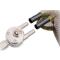 Une fourche d'écartement à déclenchement rapide permet d'enlever et de remettre en place le filet en quelques secondes. Il suffit d'appuyer sur le bouton de la fourche, de replier les bras et de les faire glisser en dehors de la fourche. Fabriquée avec précision au Royaume-Uni, la petite fourche d'écartement en inox est une oeuvre d'art en soi.