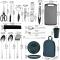 1. Ensemble de Cuisine Tout-en-Un pour le Camping : Cet ensemble de cuisine de camping complet comprend des pinces de cuisine en acier inoxydable, des spatules à fentes, des cuillères à fentes, des cuillères de cuisine, un couteau de chef, des ciseaux de cuisine, un décapsuleur, un éplucheur, deux flacons à épices, une planche à découper et 4 assiettes en plastique et tasses pour quatre personnes, ainsi que 4 couteaux, fourchettes et cuillères en acier inoxydable