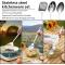 2. Ustensiles de Cuisine en Acier Inoxydable de Qualité Supérieure : Fabriqués en acier inoxydable de haute qualité, nos ustensiles de cuisine sont conçus pour résister aux rigueurs de la cuisine en extérieur. Ils sont durables, faciles à nettoyer et résistants à la rouille, garantissant qu'ils dureront à travers d'innombrables aventures en camping.