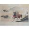 Estampe/Aquarelle japonaise originale d'après l'artiste Suzuki KIITSU (1796-1858) sur le guerrier Minamoto no à cheval près d'un cerisier en fleurs. Shurinsai Kiitsu Hitsu. Estampe/Aquarelle sur soie : 36,2 x 22,8 cm. Encadrée sous verre : 50,2 x 34,5 x 1,9 cm et 990 g. Dans l'état (voir photos).