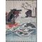Original japanese print by Utagawa KOKUNIMASA about the battle of Yashima with Yoshitsune retrieving his bow.