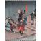 Original japanese print by Tsukioka YOSHITOSHI about Hiyoshimaru meets Koroku on Yahagibashi (Series : Eight Views from Fine Tales of Warriors).