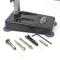 - Tension de la rotation réglable. - Blocage de la tête à 0°. - Petit et léger. Livré avec : - 3 mors interchangeables en acier trempé - Support repose-bobine et parachute - Dispositif centreur pour l' alignement rapide de l' hameçon - Ressort fixe fil - Clé Allen - Notice d'emploi.