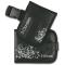 Grand étui contenant un étui intérieur avec 2 poches et passant de ceinture en simili cuir noir avec décor Livré avec ceinture. Dimensions: étui extérieur fermé: 18 x 13,5 cm, étui de ceinture: 15,5 x 12 cm