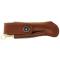 Etui en cuir brun à passant de ceinture, avec mini-fusil d'aiguisage. dimensions: Long. 14 x larg. 5 cm Convient pour des couteaux de longueur maxi plié de 12 cm et largeur 2,5 cm