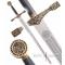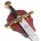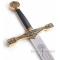Sublime replique de l'epee "excalibur" du roi Arthur tiree du film eponyme. La lame en acier stainless 440, pre-affutee mais non tranchante, est ornee de magnifiques gravures. Le pommeau qui est grave de l'inscription "excalibur -arthur" est en finition bronze-or. La fusee est en simili cuir noir. La garde en finition bronze-or est majestueusement decoree. Support en bois mural fourni ainsi que les vis de fixation. Dimensions totale : 114cm Vente interdite aux mineurs.