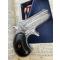Je vous propose à la vente, ce magnifique Remington Double Derringer en calibre .41 RF, (calibre encore en catégorie D! ) présenté ici dans une configuration particulièrement séduisante et peu commune. L’arme se distingue par un plaquage argent, de très belles gravures couvrant l’ensemble de la carcasse et du canon, ainsi que par d’élégantes et rares plaquettes en corne de bison à la teinte noir profond, offrant un contraste remarquable avec le métal finement décoré.