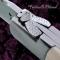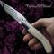 Technique : Abeille forgée traditionnelle, blocage de lame à pompe arrière (lock-back) , butée de lame fixe acier 100C6 : celle-ci ne frappe pas le fond du couteau à la fermeture. Structure acier inoxydable ép. 3.50 mm, trempé et poli à l' intérieur. Ciselé entièrement à la main avec une lime (pièce unique)..