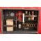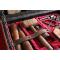 Fabriquée il y a une vingtaine d'années, d’inspiration fin 19ème début 20ème, bois, cuir, laiton et chêne pour les éléments extérieurs, l’intérieur est fait de velours, divers cuirs, aciers et laiton.