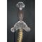 Poignée à fusée en cuivre, pommeau et garde en tôle d'argent superbement ciselé et travaillé en repoussé.