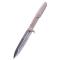 lame costaud bon tranchant ,manche bonne prise en main ,mais déçu par la matière plastique trop souple a mon gout, ainsi que l'étui ou le clips plastique lâche facilement , le pommeau reste fragile (pas assez de matière au niveau du perçage . c'est dommage pour une lame bien conçue et de qualité.