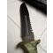 La dague : la garde en laiton porte des traces de coups, de brûlure, la lame n'est pas aiguisée.