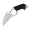 Conçu pour une main plus petite, le trou de 26 mm de diamètre est flanqué d'une lame crantée Wharncliffe entièrement plate et d'un manche en G10 noir à poignée pistolet pleine soie. Des jimpings (rainures texturées) stratégiquement placée sur le dos fournit une rampe de pouce antidérapante.
