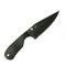 Sa lame de style Bowie à coupe droite est affûtée au sabre en LC200N ultra-résistant à la corrosion et présente une finition noire (revêtement en céramique noire non réfléchissant). Le manche en nylon renforcé de fibre de verre (FRN) est moulé par injection directement sur la soie de la lame et présente le choil d'index signature de Perrin.