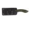 Un manche en G10 vert olive texturé et trou pour le passage d'une cordelette.
