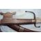 ANCIEN COUTEAU /POIGNARD FLISSA DANS SON FOURREAU TRES DECORE DE 70 CM . LA LAME DE 45CM INCRUSTE D'UN FIL DE LAITON. .LE MANCHE EN BOIS AU DECORS DE FILS DE LAITON.