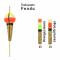 La tige centrale est constituée de bambou usiné, cette matière, grâce à ses fibres longues est à la fois bien droite et très solide, en cas de perte, ce produit naturel pourra se décomposer en quelques mois. Nous avons choisi 2 type de coloris combinant le Orange et le jaune fluo, ces 2 couleurs étant les plus visibles à courte et moyenne distances.
