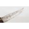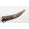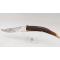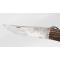 Lame longue de 172mm, largeur au talon 33mm, finition d'origine dans une belle patine avec fines taches sans corrosion ni affutage, pointe renforcée non diminuée. Poignée en corne de cerf longue de 20cm, ressort en fer bien ferme, aucun jeu.