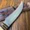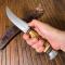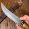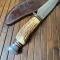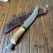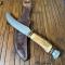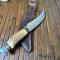 Bon état couteaux robuste sans accident ni jeu , manches en bois de Cerf et rondelles de cuir, pommeau aluminium, lame SKINNER aux marquages bien net , prise de pouce rainurée au dos de la lame.