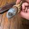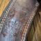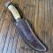 Dans son fourreau de ceinture en cuir épais avec sangle de rétention et orné d'un Cerf.