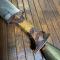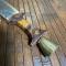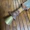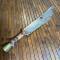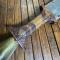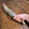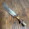 Fusée bois sculpté une fêle , pommeau conique en laiton, lame courbe à double tranchant , taches à nettoyer..