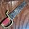Forte garde en bronze à une branche de garde , fusée en bois habillé de tissu cramoisi , très forte lame 6 mm d'épaisseur pour 7,5 de largeur au talon et 37 cm de long .