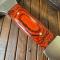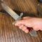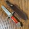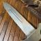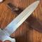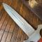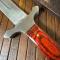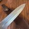 Manche en bois Pakkawood, forte garde acier , pommeau acier , lame à double tranchant et gorge centrale.