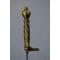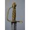Rare forte épée de cavalerie issu du règlement de 1680 du régiment du Dauphiné et datée 1686. Monture en laiton fondu à pontat simple à quillon et branche unique, pommeau piriforme et poignée laiton cannelée. Forte lame droite à double tranchant et arrête centrale gravée sur le premier tiers de la date "anno 1686" puis sur l'autre face d'un dauphin surmonté de la grosse couronne royale identifiant le régiment de cavalerie du Dauphin. Longueur totale 107cm, lame 90cm, largeur 4.2cm (réparation d'époque au quillon). Sans fourreau. Les lames de cette section étaient produites à cette époque avec des aciers médiocres à Saint Etienne.