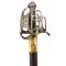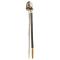 Lame de Solingen longue de 894mm à double tranchant et arête médiane, gravée sur une face d'un soleil rayonnant qui rappelle l'étendard du régiment Fritz-James cavalerie, sur l'autre face « Vive le Roy » qui atteste bien son service en France. Fourreau bois recouvert de cuir d'origine à forte couture et deux garnitures de laiton, ancienne restauration sous la chape et au dessus de la bouterolle, dard en fer.