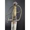 Monture en fer à garde multi-branches encore parfaitement noircie, une branche principale et quatre branches secondaires et un poucier qui rejoignent le clavier à double pontat et le pommeau de forme ovoïde. Poignée en bois filigrané de laiton à viroles en laiton. Lame forgée à Saint Etienne du modèle de la forte épée de 1680 droite à deux tranchants, double gorges et arrête médiane, longueur 95,8 cm. Sans fourreau. Fines traces d'oxydation d'usage, très bon état