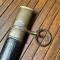 Bouterolle en laiton à un anneau de suspente poinçon 2 et C, cuir en bon état, manque la bouterole.