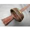 Cuir rouge côté bracelet de fixation sur le bras. Sur l’autre côté, visible lors du port, le cuir est noir. Il y a des décors de tissus vert surpiqué en rouge et décoré de petits clous.