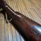 Monture en bois de noyer à fut long, matricule poinçonné sur la crosse , garniture : plaque de couche , passants de baguette , pontet, queue de détente et capucine en laiton et bronze .
