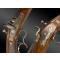 Monture en noyer, à fût long avec embout en corne, à joue ; poignée quadrillée. Deux battants.