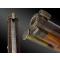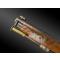 Canon lourd, à pans, damas ruban, à âme rayée ; marqué sur le dessus H. Sénévay à Fleurier et décoré d’une constellation d’étoiles dorées, d’une frise au tonnerre et d’une bague dorée à la bouche. Guidon en pointe dans un tunnel monté en queue d’aronde. Queue de culasse entièrement gravée, avec incrustations d’or et équipée du pied de hausse de la précision.