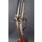 Fusil express juxtaposé calibre 500 par A. Guinard à Paris, finition d'origine bronzé et jaspé avec patine d'usage sans oxydation, aucun jeu mécanique, canon rayé de 70cm, large bande de visée marquée de l'adresse et équipé d'une hausse à deux feuillets mobiles 100 et 200m et d'un guidon dérivable, platines à chiens extérieurs marquée du fabricant, verrouillage en T par clé sous le pontet. Crosse noyer de 36cm à poignée demi pistolet quadrillée et capuche en corne, talon bois strié, longuesse à clavette, fines traces de coups sans accident. Poids 3.6Kg