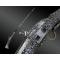 Canon a? pans puis rond, tromblone? a? la bouche, maintenu a? la monture par dix-neuf capucines en argent grave?. Platine a? silex, a? chenapan en acier. Baguette en acier. Monture en bois en- tie?rement constelle?e de clous d’argent et de plaques en argent nielle? et contre-perce?es. La contre-platine est de?core?e de deux cabochons de verre et de rosaces au niveau des vis. Plaque de couche en laiton grave?, se prolongeant sur le haut de la crosse, le dessous pre?sente un ren- fort d’acier grave? au trait. Le pontet est en laiton argente? et nielle?.