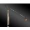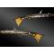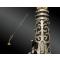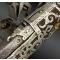 Canon a? pans puis rond, tromblone? a? la bouche, maintenu a? la monture par quatorze capucines en argent grave? de rosaces et deux en laiton. Platine a? silex, a? chenapan en acier. Baguette en fer. Monture en bois recouverte de plaques d’argent de?coupe?es et ajoure?es, de rivets d’argent, de six demie-bagues d’argent sur le dessus et d’un fil d’argent. Un renfort en acier de?coupe? assure le pendant de la de?coration.