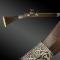 Crosse en bois recouverte de plaques en os grave? et d’une large bague en argent. Rosettes de la contre platine en os figurant des fleurs. Plaque de couche en os grave?. Ornement en argent entourant la queue de de?tente. Pontet en laiton recouvert d’argent cisele?.