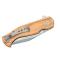 Manche bois d'olivier structuré pour éviter que la main ne glisse, entretoise aluminium anodisé marron .