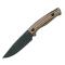 Le manche est en G10 tricolore (marron, noir, vert) résistant aux intempéries, à l'humidité avec décrochage au niveau de l'index, trou à l'arrière pour le passage d'une dragonne.