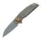 Lame en acier inoxydable M390 dureté 60-62 HRC stonewashed. Une forme Reverse Tanto avec système d'ouverture "Finger Safe".