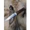 La lame a été légèrement modifiée (pour retirer l'angle sur le dos de la lame) par la coutellerie Courty à Paris et l'étui a été réalisé par un artisan. Il s'agit d'un étui soit pour le porter en gaucher devant, soit pour le porter en droitier derrière le dos (NB: je n'ai plus l'étui d'origine).